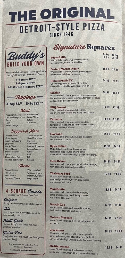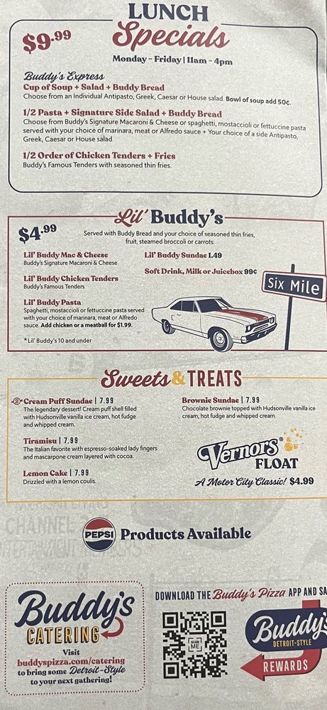 Welcome to Buddy’s Pizza Troy, where Italian cuisine meets a trendy atmosphere. Nestled at 987 Wilshire Dr in Troy, MI, this spot is perfect for pizza lovers and families alike. The menu boasts a variety of freshly made dishes, including their signature Detroit-style pizza that features a crispy crust and generous cheese portion, made even better with the addition of old-world pepperoni.